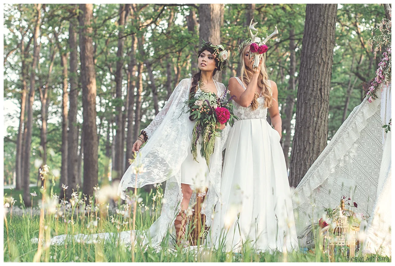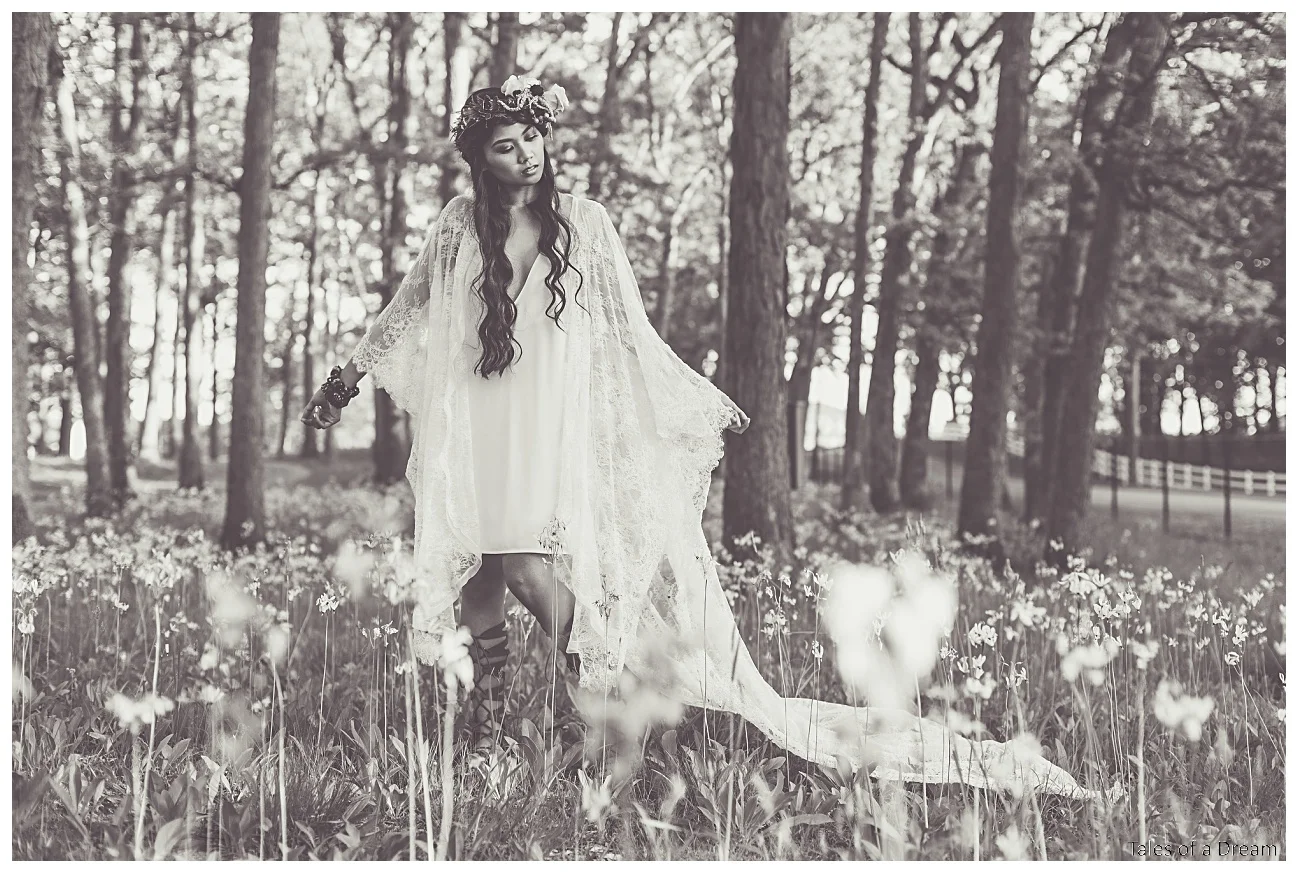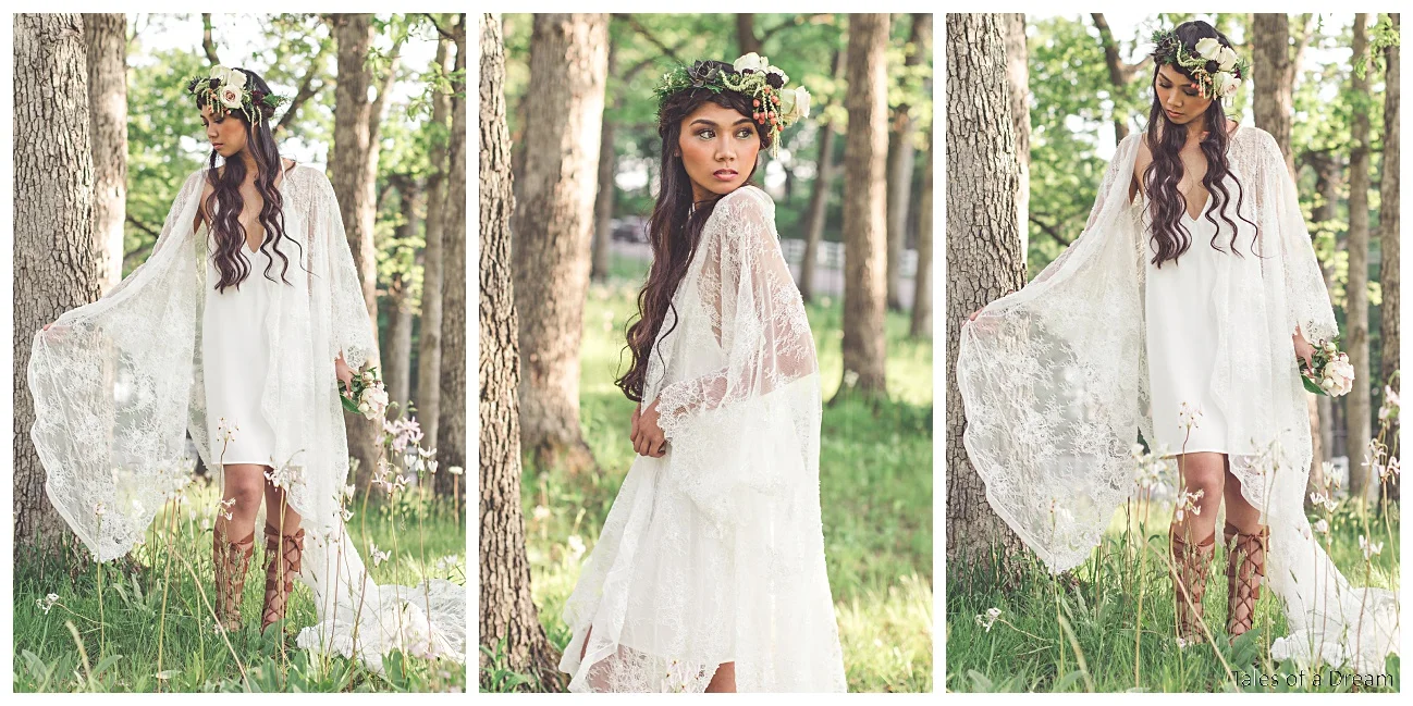 A boho bridal shoot wouldn't be complete without a lace teepee tent! We gathered a few props we already had from previous shoots, but for the most part we wanted to focus on the gown/kimono, hair & makeup and the flowers.